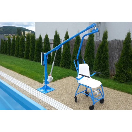 Each unit consists of fixed ground components (removable) and a chair with wheeled trolley, which allows safe and comfortable transport of the user from the pool to the changing room and back.