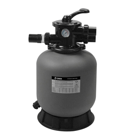 Equipped with a top-mounted multiport valve, the Onda D627 filter provides easy control of filtration, backwash, rinse, recirculation, and waste cycles, offering convenience, precision, and efficient pool maintenance.