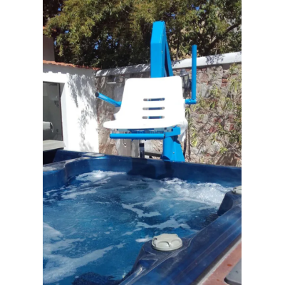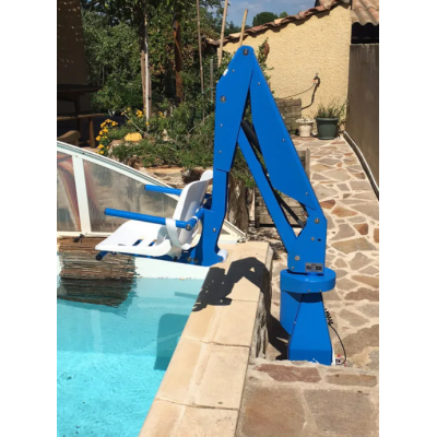 The user positions themselves on the seat and, through the handset remote control, can lift, rotate (up to 350°), and lower into the water without assistance, ensuring maximum autonomy and safety.